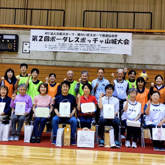 第2回ボーダレスボッチャ山城が、6月9日(日)に城陽市民体育館アリーナで開催されました。山城の各地域から、28チーム90名の選手が出場し、優勝は「ちーむ!まんまんなか」(木津川市)でした。強豪アリス(城陽市)と前年度優勝のTHF(城陽市)を破っての勝利